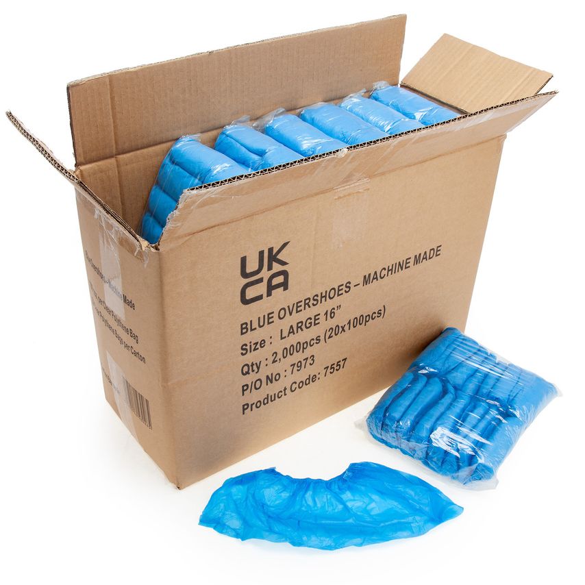 Disposable Shoe Covers, Extra Grip Blue Overshoes Plastic Protective Shoe Cover 2000 Pieces (Case)